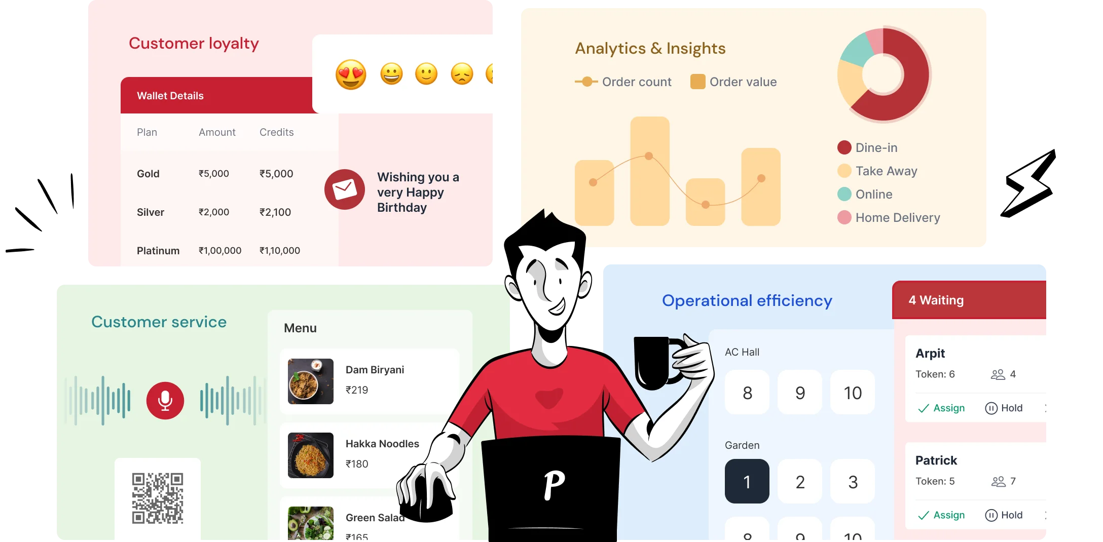 An android application that allows your staff to take customer orders, offer smart food recommendations and complete payments right at the table.