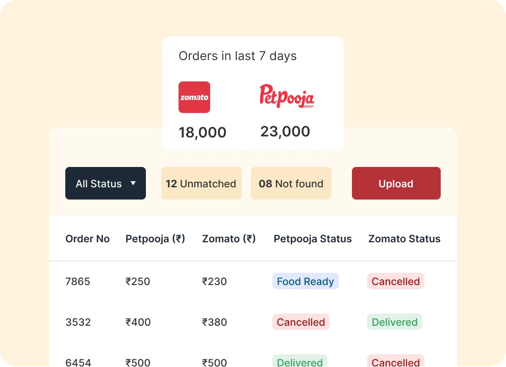 Upload your aggregator payout reports and get a complete picture of your commissions, discounts, cancellations, pending orders and the real cost of operating on third-party aggregators.