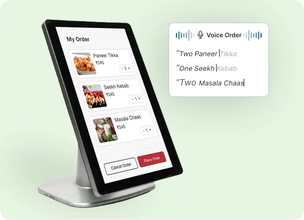 A smart food ordering system with a touchscreen & voice recognition interface to allow your guests to order digitally without walking to the counter