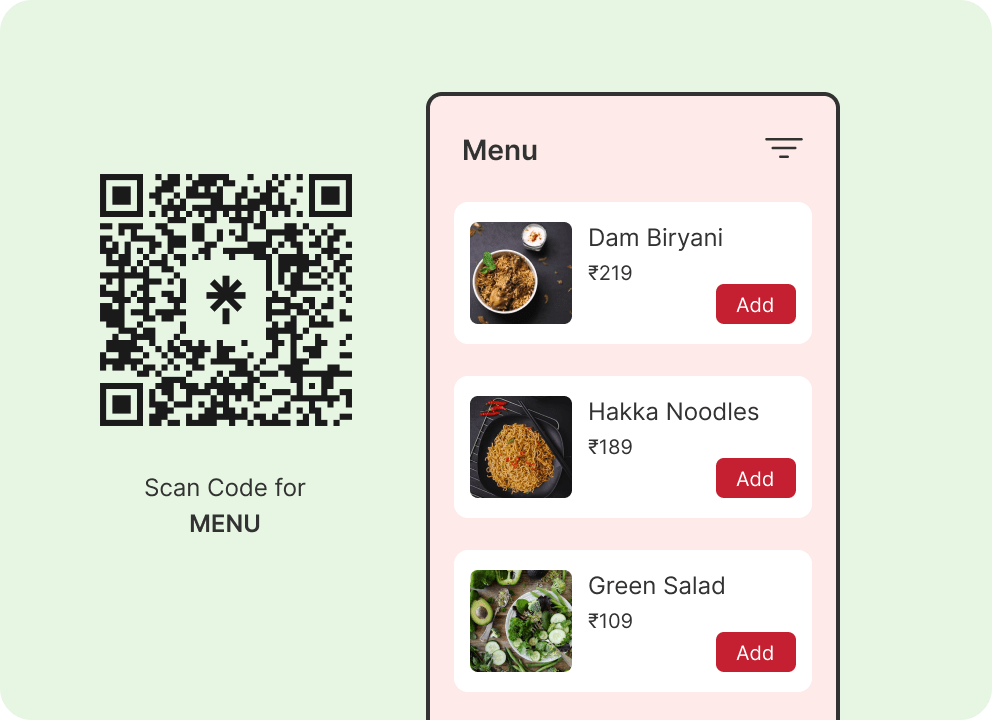 Get system-generated QR codes for your restaurant menu for customers to scan and place orders without having to leave their tables