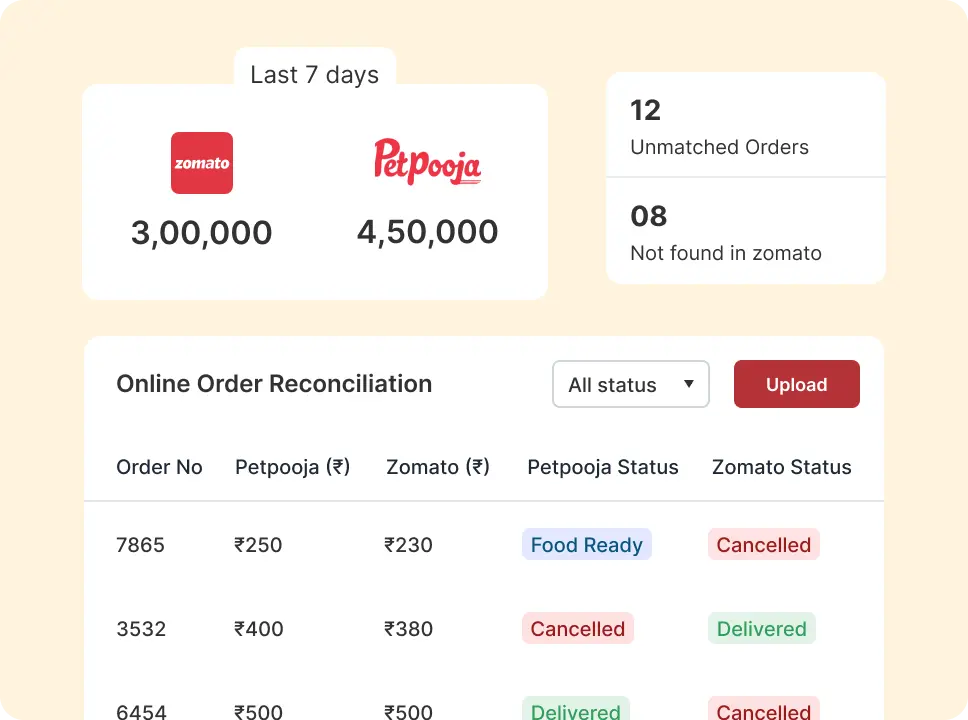 To ensure that you don't lose your hard-earned earnings due to erroneous payout reports, I-Hotel POS tracks and prepares platform-wise reconciled information about your online orders, their commission rate, excess charges, profit margins, taxes, etc.